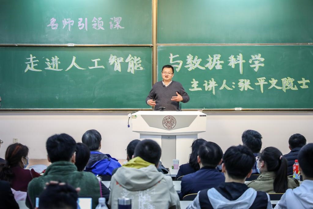 中國(guó)科學(xué)院院士張平文為南開(kāi)學(xué)子講授“名師引領(lǐng)”通識(shí)課之“走進(jìn)人工智能與數(shù)據(jù)科學(xué)”。(南開(kāi)大學(xué)供圖)