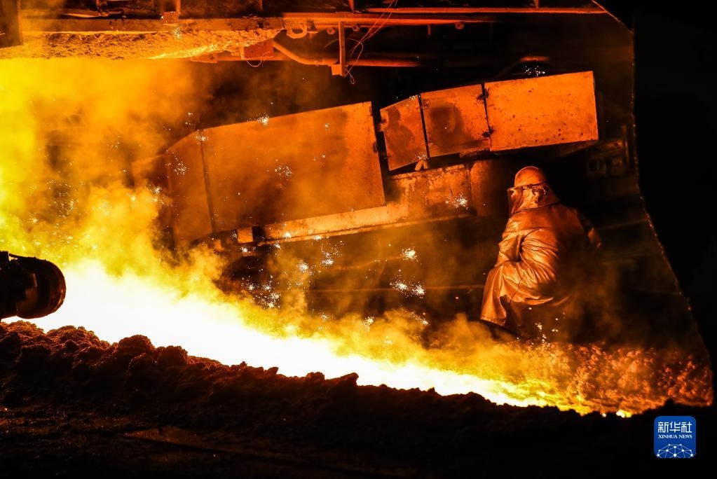 2021年7月1日,工人在鞍鋼股份煉鐵總廠新四號高爐進行生產(chǎn)作業(yè)。新華社記者 潘昱龍 攝