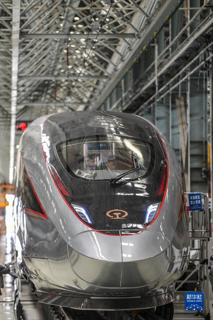2021年6月15日在中車長客高速動車組制造中心拍攝的復(fù)興號智能動車組。新華社記者 張楠 攝