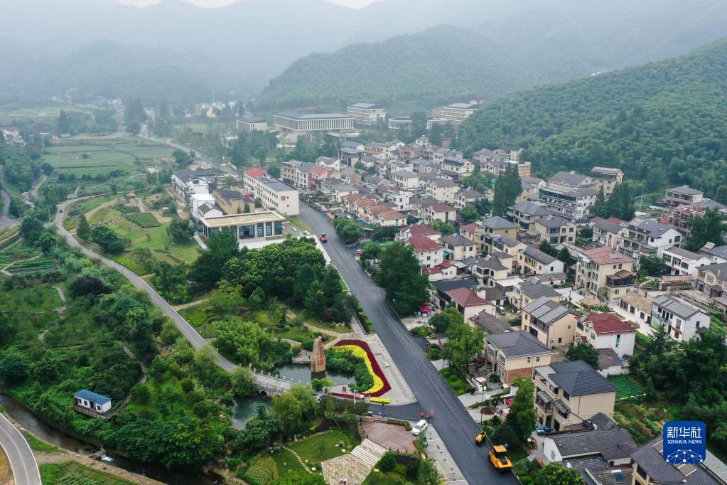 空中俯瞰浙江省安吉縣天荒坪鎮(zhèn)余村(2020年7月28日攝,無(wú)人機(jī)照片)。新華社記者 黃宗治 攝