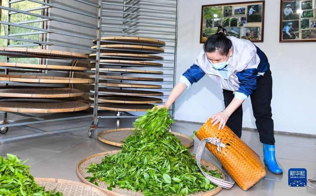 4月10日,在海南省五指山市水滿鄉(xiāng)毛納村,茶農在手工茶坊內工作。新華社記者 楊冠宇 攝