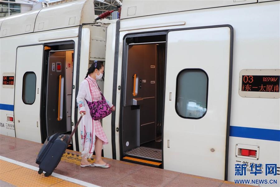 7月1日,在呼和浩特東火車站,鐵路工作人員在D2798次“和諧號(hào)”動(dòng)車組列車旁合影留念。 自7月1日起,內(nèi)蒙古呼和浩特與山西太原間首次開行動(dòng)車組列車,動(dòng)車組列車每日開行2對(duì),兩地間客運(yùn)鐵路運(yùn)行時(shí)間由過去的近10小時(shí)縮短至最快5小時(shí)以內(nèi)。 新華社記者 朱文哲 攝