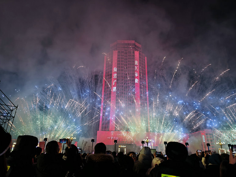 1月1日零時,隨著新年鐘聲的敲響, 內蒙古自治區(qū)呼和浩特市數(shù)萬人在新華廣場倒數(shù),迎接2024年到來。